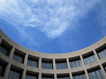These questions came to mind on a recent trip to the Hirshhorn Museum in DC (I’ll review the ColorForms exhibition in an upcoming post), where I saw Dan Graham’s For Gordon Bunshaft (2008) commissioned for the sculpture garden opposite the museum. One of the artist’s signature “pavilions,” it honors Hirshhorn architect Gordon Bunshaft (1909-1990), whose other notable achievements include Yale’s Bienecke Rare Book and Manuscript Library (1963).