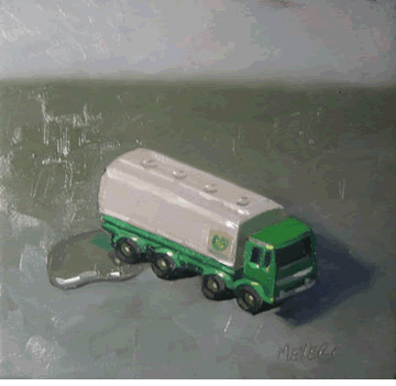 As Gawker posted the other day, in an act of what now seems like prescience, Chicago artist Chuck Meyers painted a leaking “BP Truck” in oil. This was back in 2006 and was simply part of his Series of Car Problems. Now he has made a new version, called Oil Spill– Matchbox BP Truck, which is for sale on eBay for the next few days.
