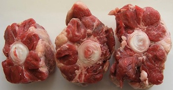 I went to the wholesale meat market on 14th street in New York, and bought two packets of [whole] oxtails…I got them home and realized I had to cut them into about five pieces per tail. Being a sculptor, I put them on my band saw. The bones were so hard the band saw[‘s] blades snapped. I went to the corner butcher to ask him to do it with his rotary disk saw; he said ‘I would do this for a customer, too bad you went behind my back.’ I learned my lesson and since then I rely on my local butcher.