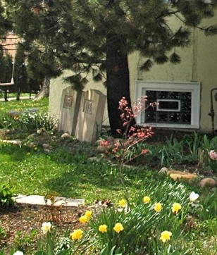 MG: This is a great question because it brings us back to Dogmatic, the former gallery in located in Chicago’s Pilsen neighborhood. Those headstones you are referring to were made by the artist Gabe Fowler, who installed them in the basement of Dogmatic many years ago. When Gabe was planning to move to New York City, he asked if he could install them in our yard because he couldn’t feasibly take them with him. I said, “Yes.” They have been lodged under our Austrian pine tree for many years now and depending on who reads them, the meaning changes. I have talked to passers by and most tell me with conviction that it is a commentary on the Iraq War. I have talked to very few who view it as a polemic abstraction.