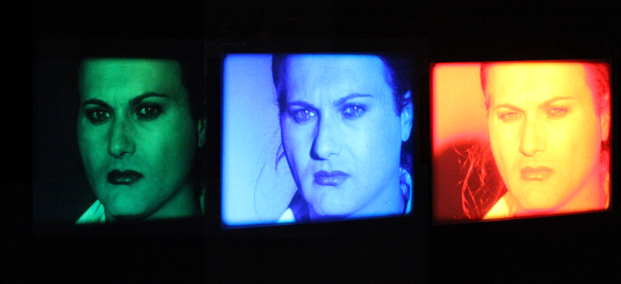 Refreshingly, Islam uses 16mm film, which allows for higher light intensity and color saturation. In Assault (2008), a film projects the image of an individual’s blurred face onto a thin eye-level screen suspended by invisible wire (think sleek, Matrix-like interface). The projector itself is an intentionally visible part of the installation and stands in the place where a camera would normally be, blasting a bright projector light to which the film’s subject appears to react, as much as the museum visitor would. The visitor is encouraged to walk around the installation and “try out” different angles or points of views.