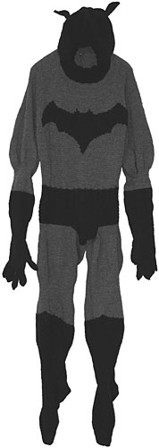 Comic books and fiber arts share a history of composing of identity through the use of cloth. Take Mark Newport’s 2009 exhibition at the Cranbrook Art Museum Super Heroes in Action, for example. Acrylic yarn is clearly not the best fabric choice for dodging bullets or, like in Newport’s “Aquaman” (2004), swimming through the depths of the ocean. Yet evoking images such as these (and perhaps some childhood aspirations), Newport suspends acrylic yarn costumes from coat hangers in order to reflect a modern sense of ironic vulnerability.