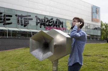 Unsworn Industries, Megaphonebooth at Kiasma-nurmi, 2010. Courtesy Finnish National Gallery / Central Art Archives / Ella Tommila.