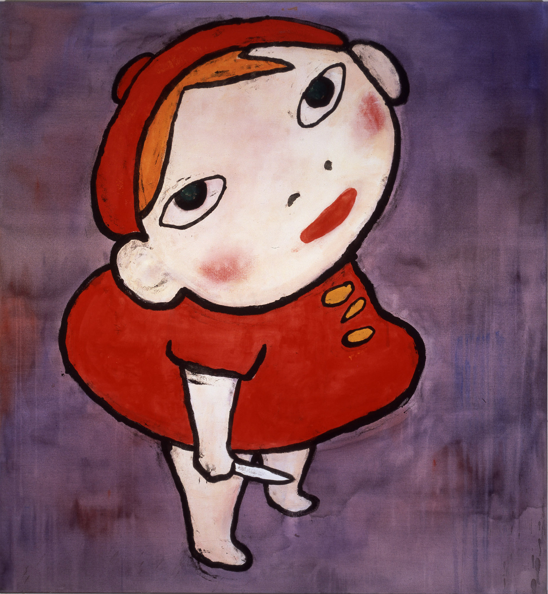 Yoshitomo Nara, "The Girl with the Knife in Her Hand," 1991. Acrylic on cotton: H. 59 1/16 x W. 55 1/8 in. Image courtesy the Asia Society Museum.