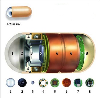 Bardin’s project for Eyebeam, M2A™: The Fantastic Voyage, takes viewers on a journey through the human digestive system by way of the M2A™ and the SmartPill. A quick Google search on these “creative” tools led me to texts about chronic constipation and gastrointestinal bleeding. Oh dear. Gastroenterology, the branch of medicine concerned with diseases of the stomach, intestines and associated organs, uses both devices. As Bardin explained it, the M2A™ (pictured above) is a hard capsule pill endoscope that, after being swallowed, takes pictures of what it sees in the GI tract. The SmartPill is softer and records pressure, pH levels, and temperature. The data is transmitted to a receiver worn by the patient, which is then uploaded to proprietary software and translated into graphic reports. Both pills are naturally excreted from the body. Strangely, neither device has been used to study how different foods affect the human body. Not until now, anyway. After five years of searching for a licensed physician to work with her, Bardin finally found a partner in Dr. Braden Kuo, a gastroenterologist with Harvard Medical School. Kuo will work together with Bardin as he leads the first ever clinical study to use the M2A™ and SmartPill to look at how the human body responds to processed versus whole foods. Bardin’s project for Eyebeam could make gastroenterological history.