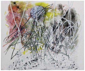 The minute he held up Stoned at the depot of his gallery at the Johannesburg Art Fair last April, I stood there instinctively connecting the dots. Images and texts of Abstract Expressionist painting were flashing before my eyes – it was mentally a cross-art history puzzle. All the information was there, all the clues are still right there; thus, I stand by his side when he wishes he could respond by saying “you figure it out!” every time he’s being asked about the content of his work.