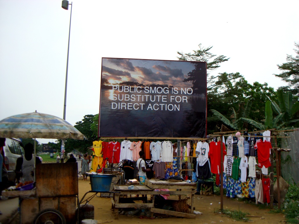 Amy Balkin, "Public Smog" billboards, Douala, Cameroon 2009. Image: Benoît Mangin. Courtesy the artist.