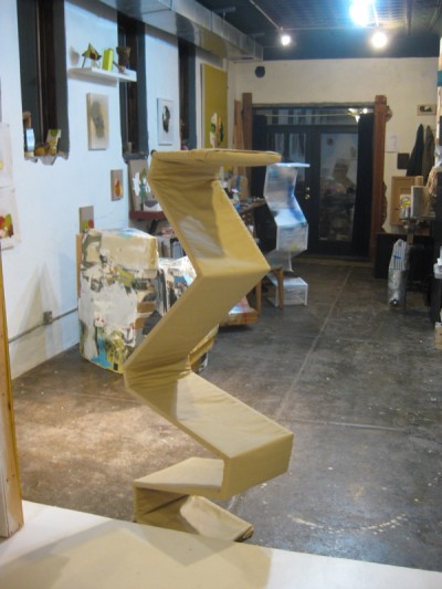In the five years that I have known Anschultz, he has been constantly busy traveling around the country to participate in exhibitions. Since finishing his MFA at Washington University in St. Louis in 2002, he has shown in a host of galleries, alternative spaces and museums, in cities from Pullman, WA to Philadelphia and from New Orleans to Chicago. This past fall, his solo exhibition, Stick Around For Joy, was first shown at Laumeier Sculpture Park in St. Louis and then traveled to Longue Vue House and Garden in New Orleans, a historical home which has recently begun to exhibit contemporary art within the context of the preserved residential space. Also, in January he participated in a two person show at Tiger Strikes Asteroid in Philadelphia titled Due Diligence Done. In the next few months, he will open a show at The Hills in Chicago, and then spend the summer as an artist-in-residence at Cite Internationale des Artes in Paris.