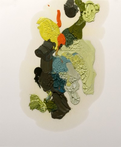 After working on raw canvas for the last year or so, moving to paper has been really interesting. I use smooth Bristol, which has very little texture and remains very flat and absorbs the oil from paint in a really nice way. It’s prompted me to explore other extremely porous materials. For instance I’ve been using raw MDF (medium density fiberboard) and applying paint directly to the surface. It makes these really nice halos around the paint as the MDF leaches the oil out of the paint. I’m not really sure what’s going to happen to these pieces as they continue to change with time.