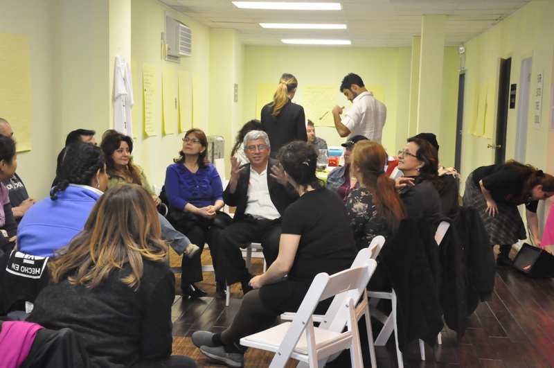 Tania Bruguera, "Immigrant Movement International," 2011 - 2015. Event #1: MAKE A MOVEMENT (Slogan Workshop), April 3rd, 2011. Courtesy Studio Bruguera and Immigrant Movement International. Photo by Ahram Jeo.