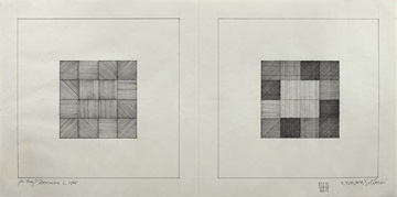 Sol LeWitt, "Drawing Series I/3241/A&B," 1968. Ink on paper, 10-1⁄4 x 20-3⁄4 inches. Inscribed and dated lower left: "For Eva/ November 6, 1968" and signed lower right: "Sol LeWitt."