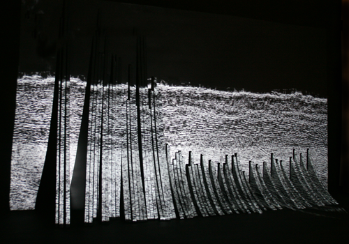 There is a dark elegance in all of Melissa F Clarke’s work, so I was excited when I heard she was taking on the romantic connotations of Antarctica for her Master’s thesis. Her series of multimedia pieces, Untitled Antarctica, include prints, video sculptures, and a sound piece.