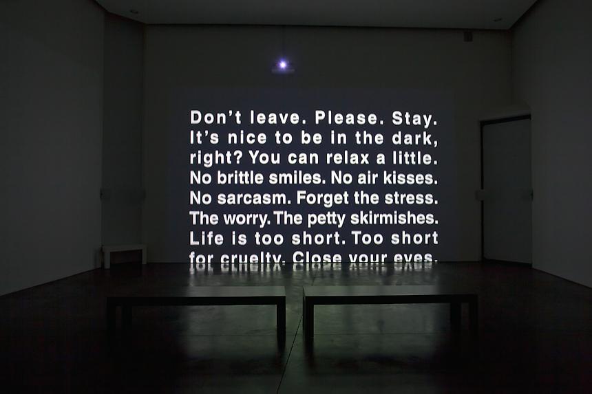 Barbara Kruger, "The Globe Shrinks," 2010, video installation. Photo: Joshua White/JWPictures.com, Courtesy L&M Arts.