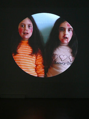 Because so much of Özmen’s work features not only himself but friends, colleagues, family members, and the immediate environs to which he is so intimately connected, there is also a palpably personal aspect to his work that resonates cleanly with the viewer, regardless of the politics or seemingly local/regional issues that are also at hand. For example, the 2004 video piece titled Köyümüz (Our Village) features two young girls (who happen to be Özmen’s nieces) singing a children’s song in Kurdish. Rather than featuring the sort of innocent lyrics normally associated with children’s songs, the two girls sing about their poverty, their father’s illness and inability to work, and their inability to attend school. Over the course of the seven minute video the song is sung three times; as it progresses through the repetitions, the girls’ faces slowly change, becoming covered in bruises and blood. In addition, the camera appears to be shooting through a round frame, reminiscent of both a gun’s sight and the close cropping technique used by studio photographers in creating sentimental portraits in the early days of photography. Are the girls being targeted by some anonymous villain? Or is Özmen drawing our attention to the act of representation and the dynamics at work when we watch the pain of others? As critic and curator Barbara Heinrich points out, “The source of the violence remains unclear. Rather, these traces appear to stand for the latent violence of social relations, from which there is no escape.” Our Village serves as a reminder that, despite the official state of détente in the region, violence remains an embedded part of daily existence, a reality that both predates the political conflict and lingers on as an unhappy inheritance.
