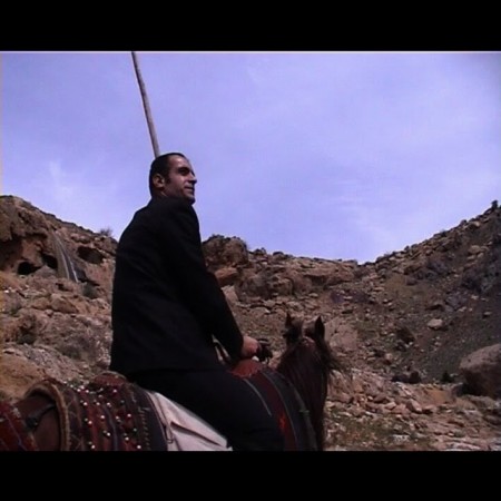 Though the goal represented in Road to Tate Modern–journeying via horseback to any place very far from Diyarbakır, much less London–is completely absurd, the earnestness and naiveté with which the protagonists doggedly pursue their objective is both charming and heartbreaking, as the viewer understands–as the protagonists do not–the impossibility of their mission. (But then again who knows? Perhaps horseback is the perfect way to reach the Tate Modern.) This work establishes many of the reoccurring themes of Özmen’s oeuvre: the use of the arid landscape surrounding Diyarbakır as not only a setting but as a symbolic touchstone; restless movement, the inability to stay in a fixed location unless hiding; concern with questions of periphery and center; and the deployment of humor or absurdity as way to protect the view (and perhaps Özmen himself) against the painful reality–the lived experience of Kurds living in Turkey and all people living in that particular region–to which his works speak.