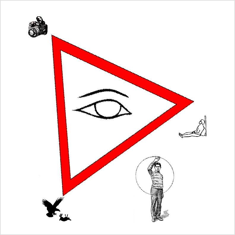 Carlos Motta, "The Triangle (The Ethics of Photographic Representation) (Inspired by the reading of Ariella Azoulay’s “The Civil Contract of Photography,” Martha Rosler’s “In, Around and Afterthoughts on Documentary Photography” and David Levi Strauss’ writings on Kevin Carter)," 2011. Letterpress print, 30 x 30”. Courtesy the artist.