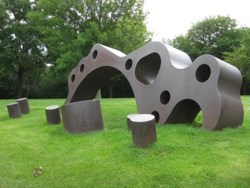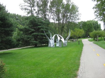 In parts, the park becomes quite narrow, the two bike paths winnowing down to one, and the traffic on the west-most edge of the park is considerable. However, The Skokie Northshore Sculpture Park is an impressive example of turning a sow’s ear into a silk purse. It is obvious while biking the length of the park that this was at one time scrap land. Their official website says the land was owned by the Metropolitan Water Reclamation District of Greater Chicago and it isn’t hard to imagine what it looked like then. Their website also offers a downloadable PDF of a self-guided tour that lists the title of the work and the artist (though sadly not the date or an artist’s statement) for all of the more than sixty sculptures collected in the park. Though little-known, The Skokie Northshore Sculpture Park is a refreshing alternative to indoor galleries, and delightful way to view contemporary sculpture.
