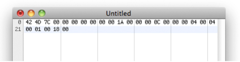 In the age of automation, software tools, and outsourced development, how can any digital artist expect to be taken seriously, if the “labor” expended is a matter of keeping up a Tumblr blog or printing out and blowing up Photoshop gradients? Is there some kind of heroic equivalent to making digital images from scratch, “by hand” and “without stencils?” Look no further! In this tutorial we will be showing you how to create a Bitmap Image File (.bmp). A .bmp file, like any image file, is a matrix of pixels sized a particular width by a particular height. We will be creating our .bmp from scratch, by typing in machine code bit by bit. When one hears the term “machine code,” binary-code is likely the first thing that comes to mind. For this tutorial, however, we’ll be working in Hexadecimal. In order to write in Hex code you’ll need a hex editor. You can download Hex Fiend, a free and open source hex editor for MAC, here. (NOTE: Call us crazy, but we’re assuming you’re a MAC user. Don’t worry, the same principles apply to all platforms).