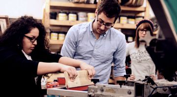 Adam Weiler working with young artists at Ambrose.