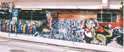 After my parents realized they could manage a store, they replicated the business in Silverlake. The second store has big mural on the side of it. When they first started the business back in the 80’s, gangs constantly sprayed over each others’ tags on the store’s exterior walls. One day my dad approached one of the taggers and asked what he could do to make them stop. They said if he let an artist make a mural and sign his name to it, no one would ever graffiti up the building anymore. So my dad paid him to spray a mural which stayed on the building for nearly 20 years. It was covered over about 8 years ago with a new one, but I found someone had put a picture of it up online a while back. The image below shows what it looked like.