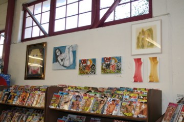 About five years ago, my friend John Knuth moved to Los Angeles from Chicago. We were friends for awhile before he even knew about my parents’ store, and in his fresh-to-L.A. vision, he saw it as a great place to stage art shows. I went back to New York and John finally convinced my mom that he could make some great things happen if they let him. For about a year, John curated and had friends curate exhibits with opening performances which were incredibly fun and where you had to hunt for the art in the store. It was kind of the Where’s Waldo of art in a porn store. The art shows were a bit of a revelation to my parents (or if you couldn’t tell who really runs the business by now, to my mom). Those shows brought a whole different group of “kids” to the store (as my mom put it), and who knows, maybe some different kinds of things could sell (or so she hoped). After about the 10th such show, I was back in L.A. and stopped in with John to see the warehouse where my parents’ office was located; it also houses all of the videos they distribute. John took one look at the space and immediately proposed that he could make it into a gallery. Amazingly, he convinced my Mom again, and on my next trip to L.A. I was in for one of the biggest shocks of my life: the Circus Gallery.