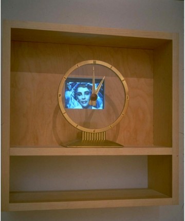 "Time Matters," 1999-2000. Clock, shelf, video of images of classic movie stars morphing from youngest to oldest versions of themselves in movies.