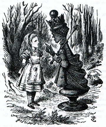 In Through The Looking Glass, Lewis Carroll’s sequel to her first journey, Alice adventures once again, this time moving across the chess board of a parallel world from pawn to queen. And once again Alice’s story seems to fit just right.