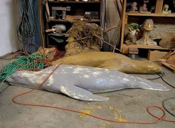 SAS does work for museums (dioramas, architectural models, reconstructed extinct animals and plants), fine-art collectors (murals, sculptures, tiles, paintings and installations) and films and television (scale models, creature design, special effects, paintings, and props). Tilton once wanted to work in sci-fi/horror movies (and still confesses to a love of the “lowbrow”), but his work as SAS’ Art Director and Lead Artist has given him invaluable scientific and technical experience—perhaps exceeding what he could have learned in computer-graphics-driven Hollywood genre films. When I visited the artist at his workplace recently, Tilton, surrounded by SAS props, maquettes, and tools, looked around the vast warehouse, and reflected on the relationship between his job and his fine-art work: “It’s very cause-and-effect. It [the exchange of ideas] becomes second nature, and you get paid for it.”