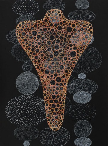 The humanoid figures of the paleolithic world are echoed in King’s new works. The Great Mother was concretized as a gently rising mound, a smooth and pear-form bulb or egg, her breasts, hips and belly a gentle conglomeration of all things fecund and full of fluid warmth. These associations connect directly to those of the vessel. Thus throughout history Mother-form is given to objects of containment: the bowl, the chalice, the vase and even a “cabinet of the cosmos.” The Talisman plays a similar role, as it too signifies a protecting presence, quite literally a holder of the bearer’s hopefulness for the future.