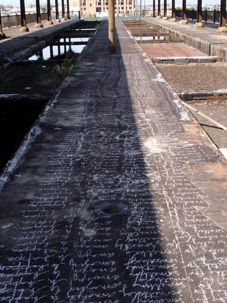 Jessica Serran. "I am waiting for something amazing to happen" (detail). Mixed media installation in West Oakland, CA train station. Courtesy the artist.