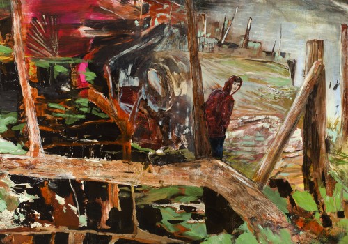 Sarah Margolis-Pineo: You’re of course best known for your depictions of waifs and dandies—characters very conspicuous in your earlier paintings who have been subsumed by vast landscapes in your more recent work. I’m wondering if you can elaborate on your concept of “fag limbo,” and articulate how it has conceptually framed your work?
