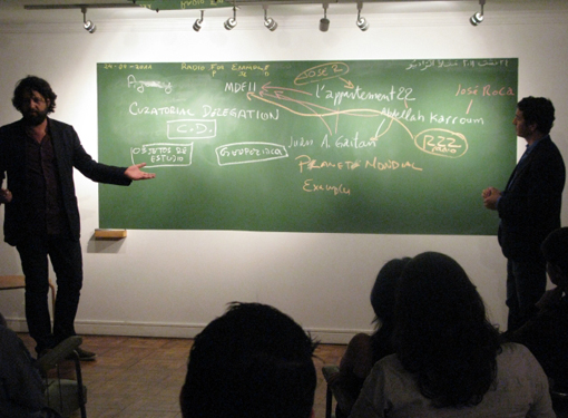 Radio For Example, presentation by the Curatorial Delegation (Juan Gaitàn and Abdellah Karroum), at MDE11, Medellin, Colombia, 2011.