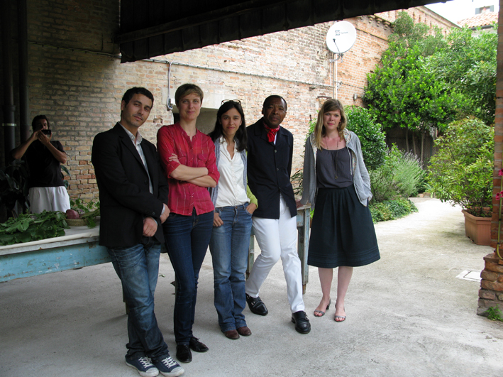 From left to right: Abdellah Karroum, Émilie Renard, Melanie Bouteloup, Okwui Enwezor, and Clair Staebler, Venice, 2011.