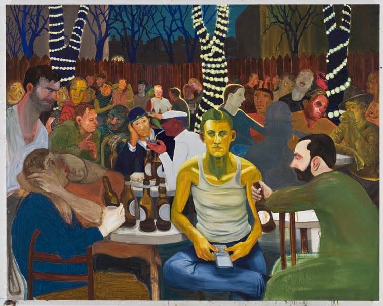 Nicole Eisenman. "Beer Garden with Ash," 2009. Oil on canvas. Courtesy the artist and Leo Koenig, Inc.