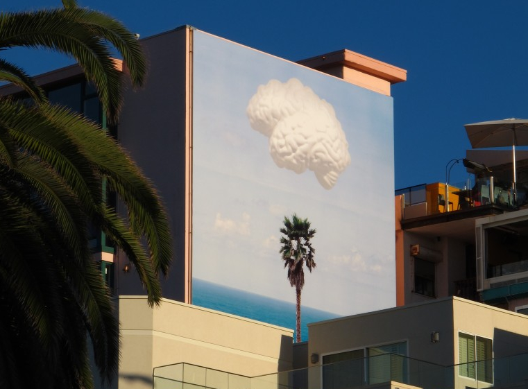 John Baldessari. "Brain/Cloud (with Seascape and Palm Tree)," 1250 Prospect Street, La Jolla, CA. Photo courtesy of The La Jolla Community Foundation.