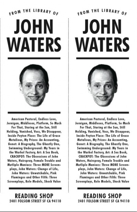 KH: Right now, you are featuring books from John Waters’ library in your Reading Shop. The books are available to browse through and to purchase. Did John choose which books to feature? If so, did you provide him with any guidelines?