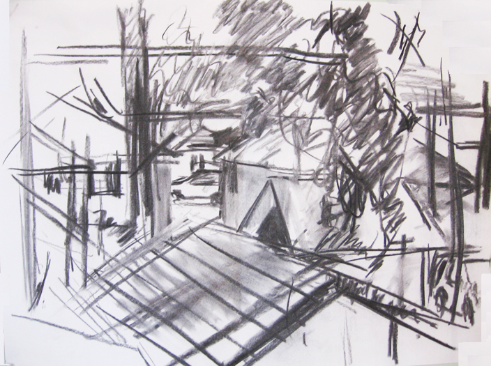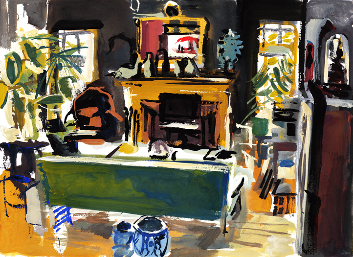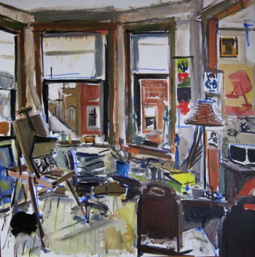I’ve set up a studio in a spare bedroom here and, slowly, a bit of new work has begun. If you’re a painter who’s primarily inspired by your physical surroundings, it takes some time for a new place to soak into your consciousness in that way that’s required to make pictures. Meanwhile, everywhere I turn here, there’s a new thing to look at and tuck away for use later. Shay has lived here for some three years and there are interesting objects to occupy me in every corner. My presence is starting to creep in as well: the back room has my bookshelf and flatfile and a bunch of old paintings on the walls. My scanner’s set up next to her desk in the living room. My shirts hang in the closet and in one of the dresser drawers. I’m beginning to belong.