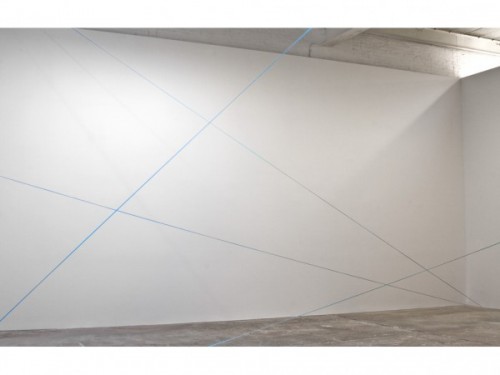 The Fred Sandback exhibition, Decades, at David Zwirner Gallery offers, as its title implies, a retrospective sampling of Sandback’s career-long investigation of sculpture and its surroundings. Including works from 1969 to 2000, the Zwirner exhibition also includes a spatial reconstruction of Galerie Heiner Friedrich, Munich, a gallery for which Sandback designed a number of situationally specific works in the 1960s and 1970s. Including works from every decade of Sandback’s career (he died in 2003), this exhibition offers a wonderful opportunity to appreciate the artist’s self-proclaimed goal to “assert a certain place or volume in its full materiality without occupying and obscuring it.”[1]
