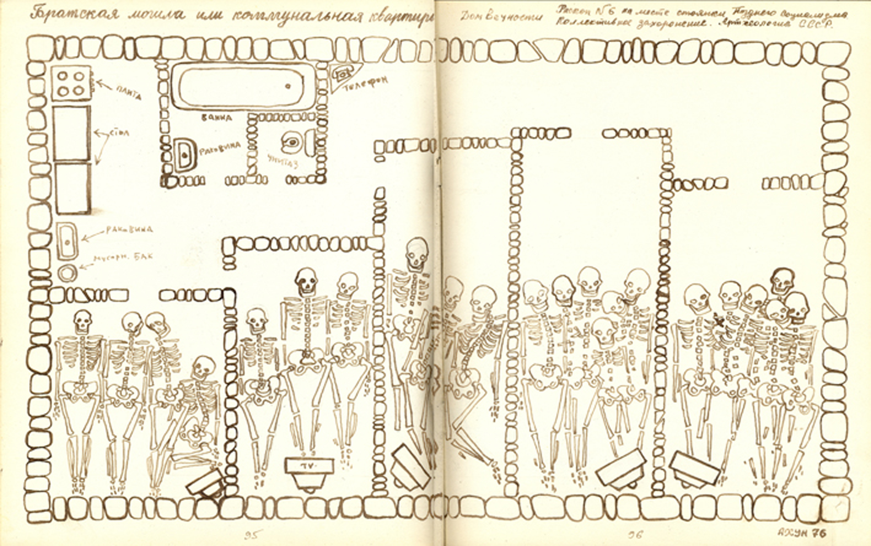Vyacheslav Akhunov. "Art-cheology," 1976. Drawing on manuscript page. Courtesy the artist and AhmadyArts.