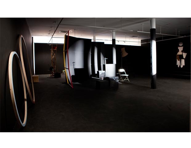 Working in similarly communal, interactive arrangements, Ohad Meromi draws inspiration from his roots (having been born on an Israeli kibbutz) and from modernist forms of theater. Basing his thinking around questioning the definition of a stage, Meromi tries to minimize the markers of the stage while expanding its space to become an all-encompassing structure into which the audience is subsumed. As Meromi himself has written: