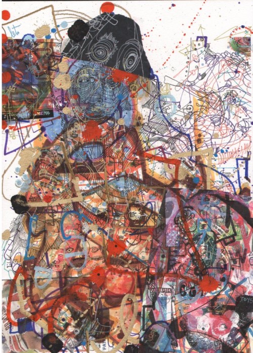 My work is about mixing various different speeds, styles, techniques within my palate. And sometimes they all happen on one page, on one painting or one album. Its about the cross-pollination of all these different things that I’ve experienced. My work has to do with the concept of time. What happens if I use a drawing from 8th grade, with a drawing I did today with a collage piece I did a year ago. I love the ability to mash many moments into one.