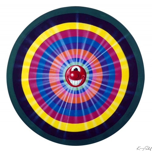 Kenny Scharf. "Cosmic Donut," 2008. Silkscreen with crystal glitter on illustration board. Courtesy of Paul Kasmin Gallery.