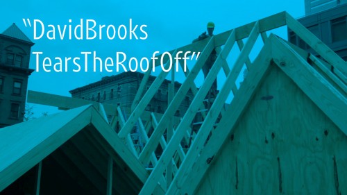 Production still from the NYCU video, "David Brooks Tears the Roof Off."