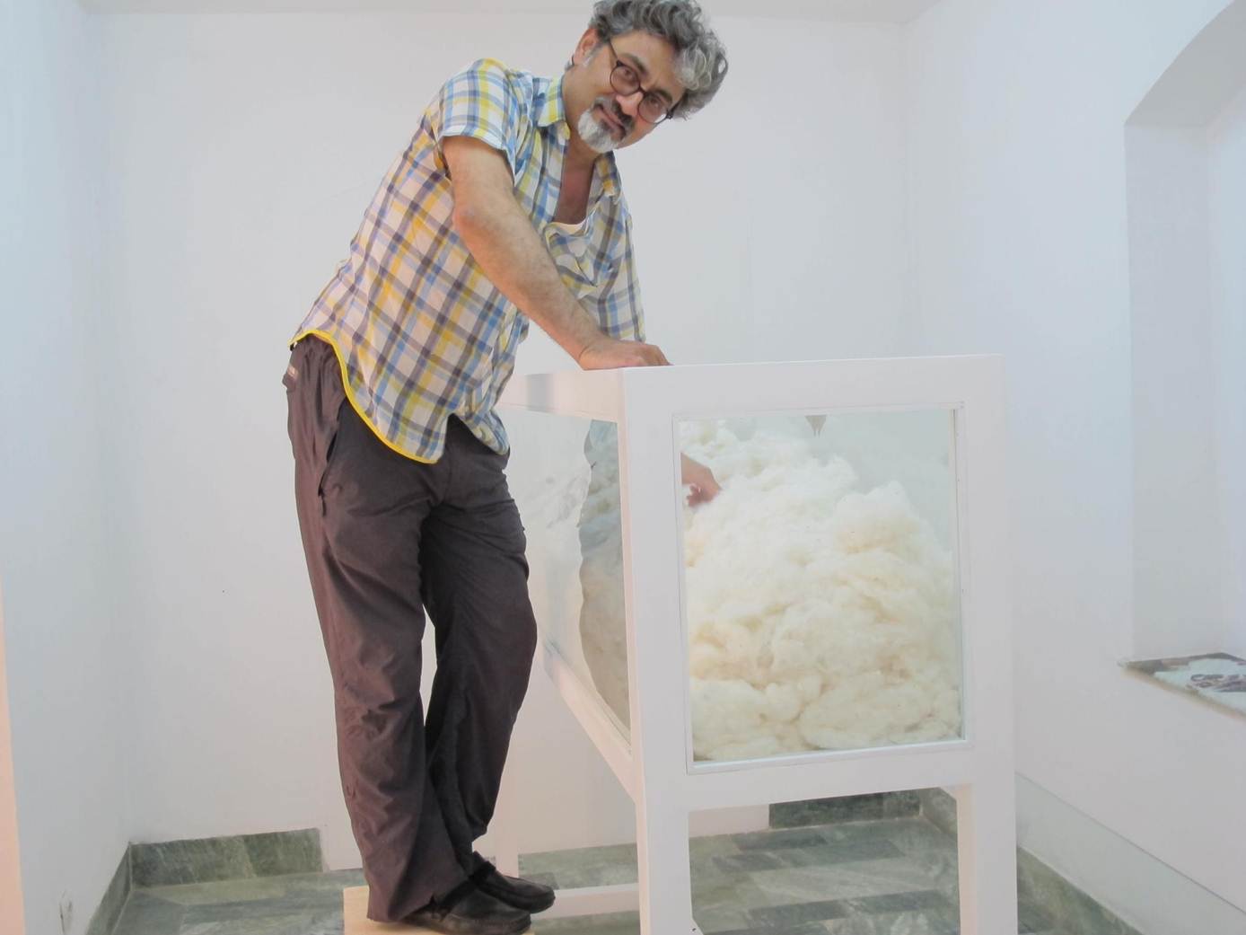 Barmak Akram, installing his work “Phytomophismes” in Kabul, Afghanistan.