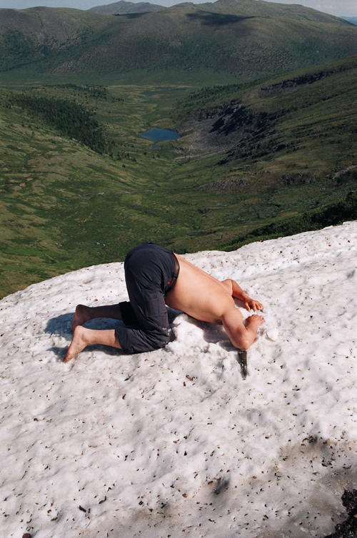 Ulan Djaparov. “Cold Head,” 2003. Photo documentation of a performance action. 80 x 120 cm. Courtesy of Ahmady Arts, The Taste of Others.