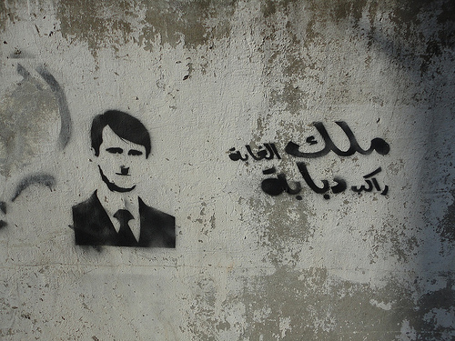 Syrian President Bachar Al-Assad depicted as Hitler. Photo courtesy of Hanibaael via Flickr.