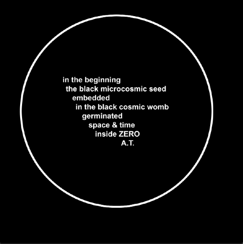 Aldo Tambellini: I can’t tell you about Black Zero unless I tell you the beginning, which was called Black. […] When I came to New York I ended up working with black without thinking why. There was something about the area I was in, in the Lower East Side. Somehow, spontaneously, my work began to be a circular in form, and black. […] I was doing sculpture, and then I was also doing painting, which was black.