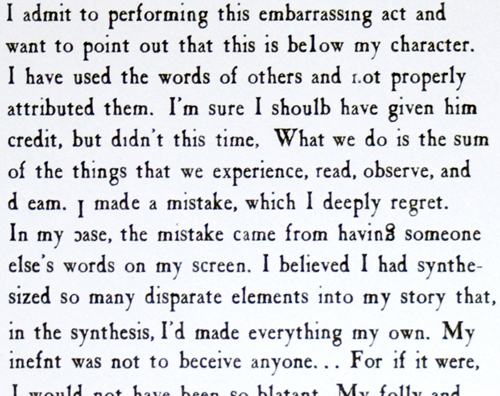 Angie Waller. "I'm Sorry," 2011. 4.5″ x 8.75″. Edition 35 book, hand set type, stitch binding. Courtesy of the artist.