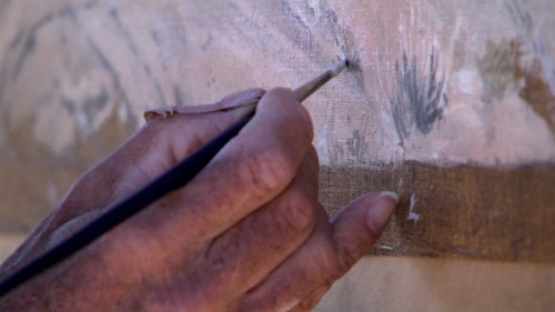 Filmed in Presidio, Texas in late 2010, painter Rackstraw Downes describes why he views the work of some long-deceased painters to be relevant to his own contemporary practice. Paintings by such artists are shown including Claude Lorrain’s Sunrise (1646–47), Jacob van Ruisdael’s Wheat Fields (1670), and J.M.W. Turner’sThe Burning of the Houses of Lords and Commons (1834–35). Despite not using the same techniques as these painters, Downes seeks out their work because he considers it “useful,” “provocative,” and “like challenges.”