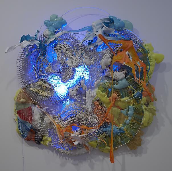 - Judy Pfaff is showing her work at Ameringer McEnery Yohe (NYC). This exhibition highlights the artist’s use of steel, glass, florescent lights, found objects, root systems of trees, paper and other materials. Her work is “ordered in the way that nature is ordered, without boundaries.” This show is on view through November 10.